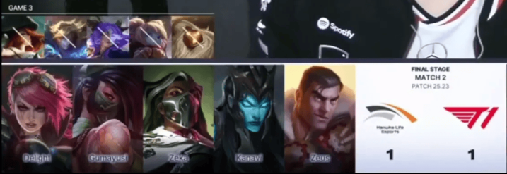 HLE选用:Zeus杰斯、Kanavi蔚、Zeka阿卡丽、Gumayusi卡莉斯塔、Delight烈娜塔